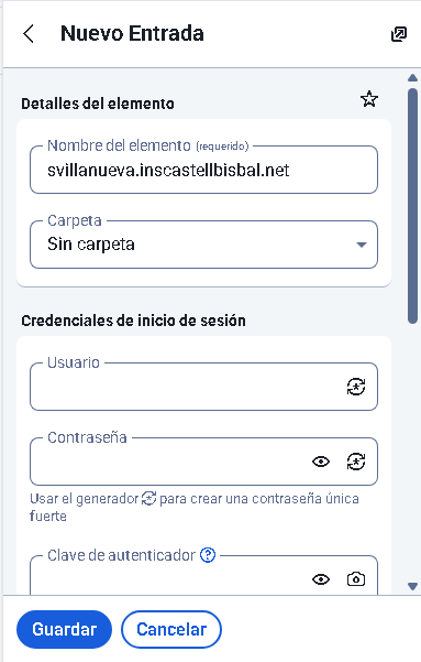 Aquí es posa tota la informació necesària per fer l’inici de sessió i cuan acabis de posar tota l’informació s’ha de clicar al botó blau de Guardar.