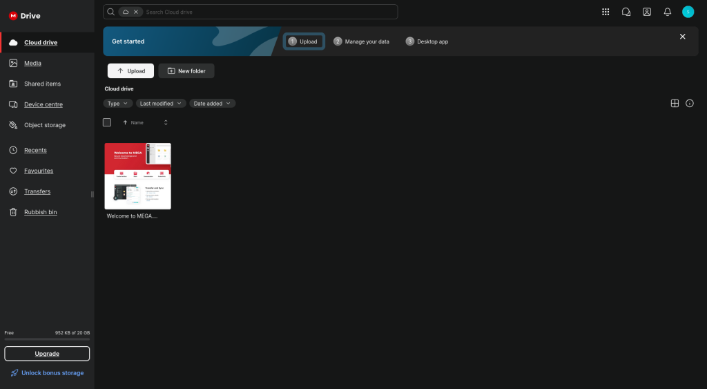 En últim lloc, que he provat ha sigut Mega. Aquest ho solc utilitzar per passar arxius entre persones, ja que té un molt bon sistema de transferència d’arxius, una vegada hagis pujat els arxius hi ha una opció per generar un enllaç i la persona que obri el enllaç es pot descarregar l’arxiu que hagis pujat.