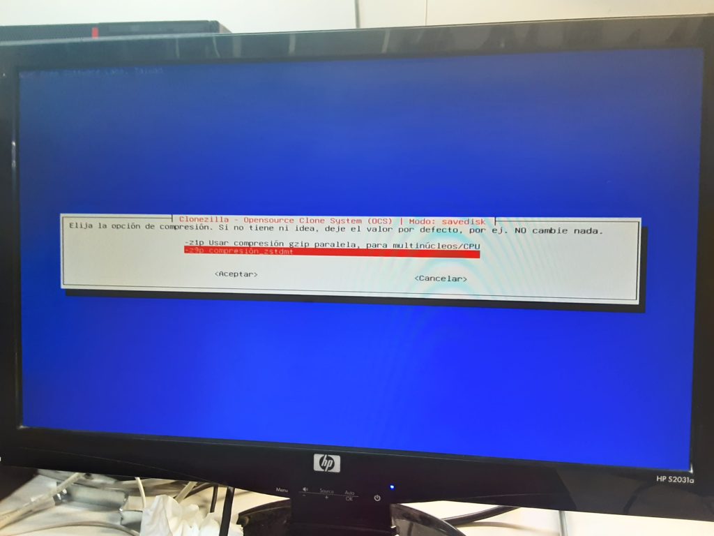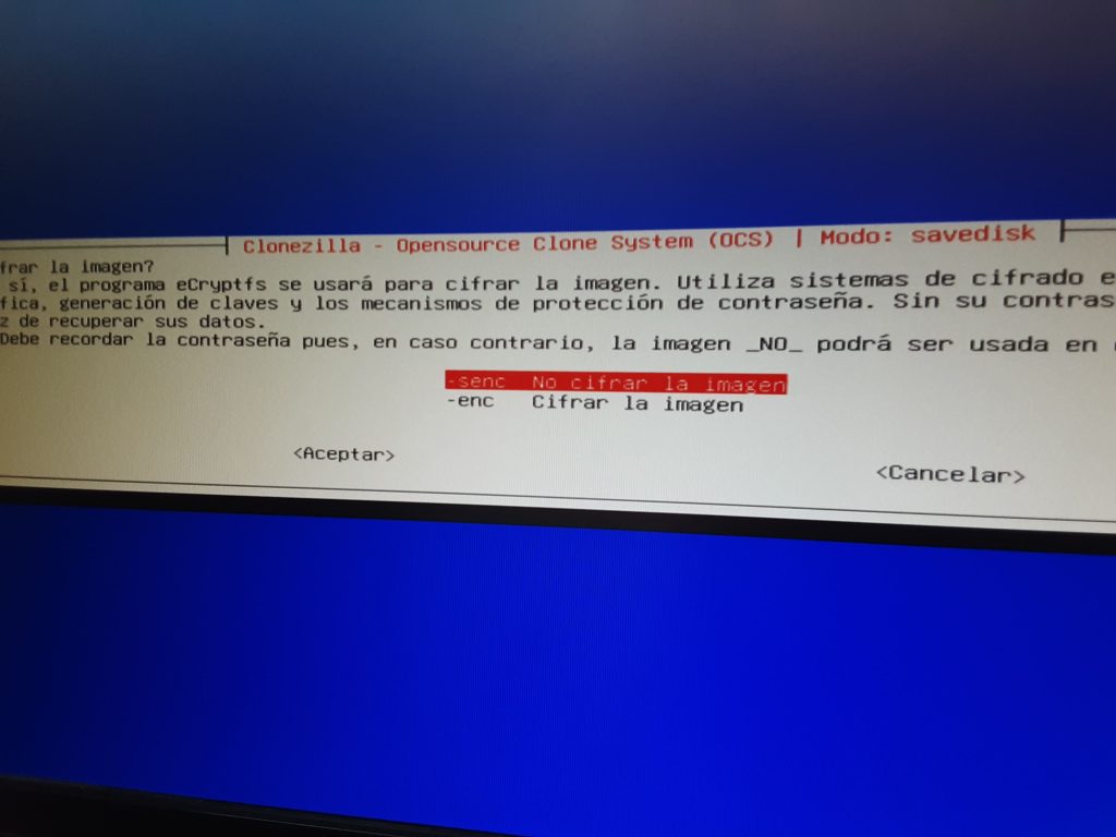 Això tardarà una estona a completar-se. Quan acabi de crear la imatge ens donarà a escollir el mètode de compressió i xifrat.