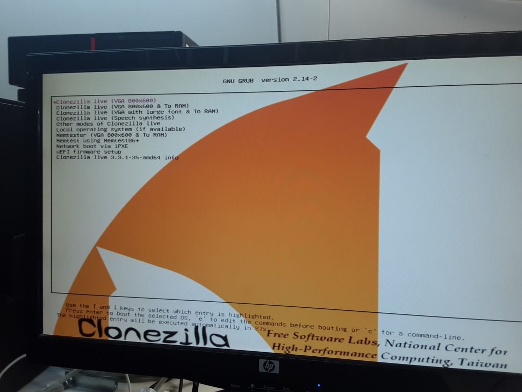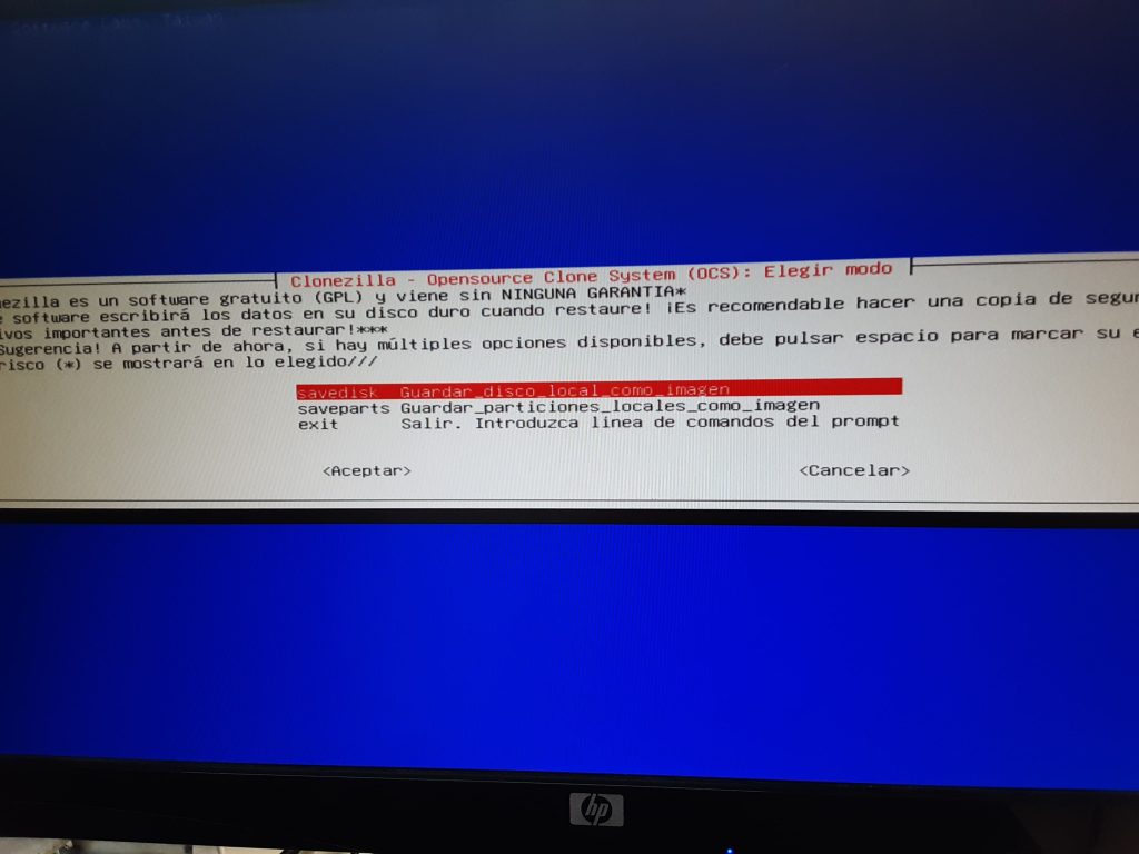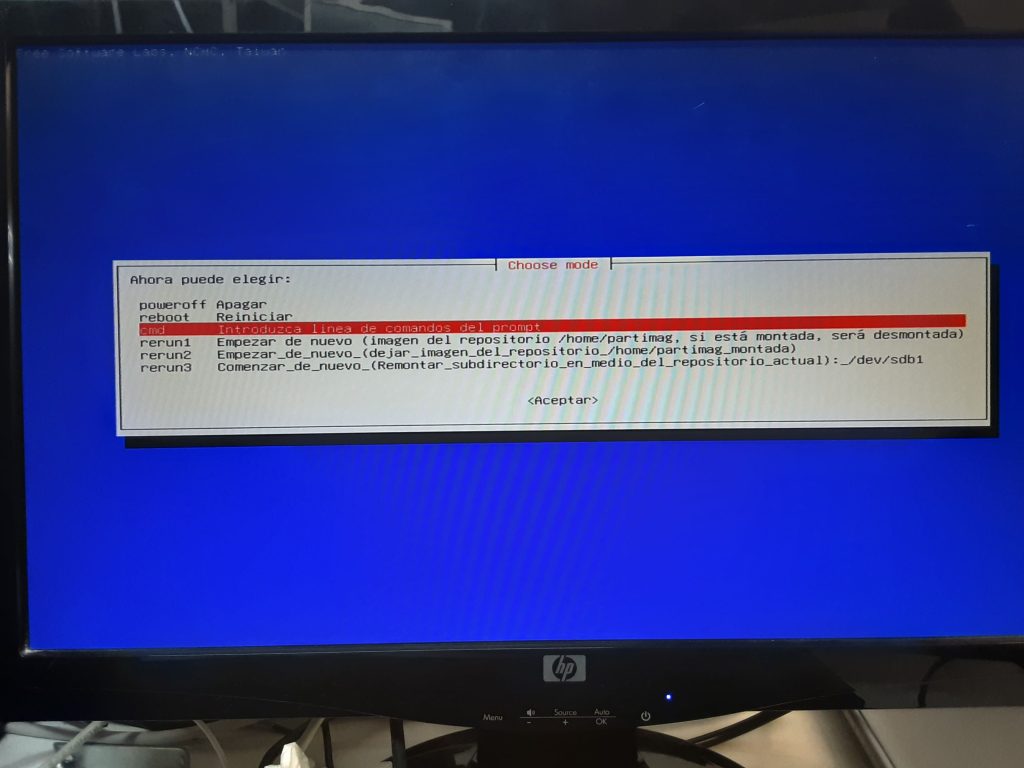 Ara ja sortirà per encendre l’equip amb l’USB, al botejar amb l’USB s’obrirà la pantalla d’inici del Clonezilla