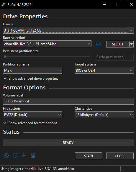 Una vegada descarregada hem fet un USB bootable amb Rufus.