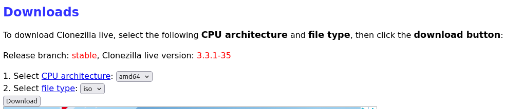 Per clonar el nostre disc dur hem utilitzat el programa que es diu Clonezilla. Per descarregar el Clonezilla hem d’entrar a la seva pàgina web i descarregar l’ISO