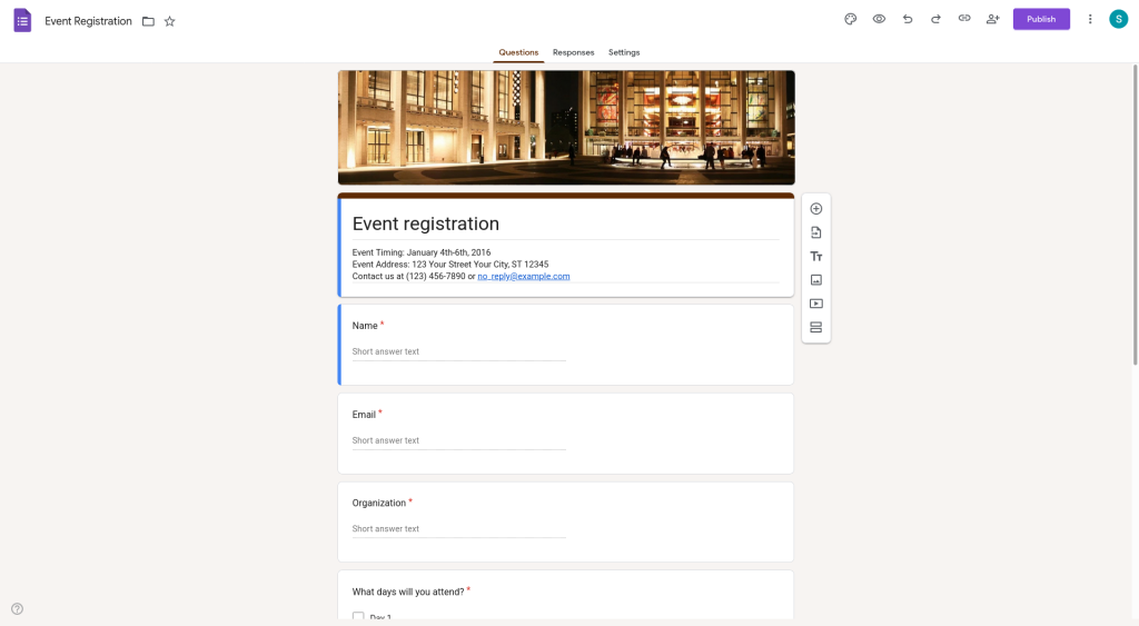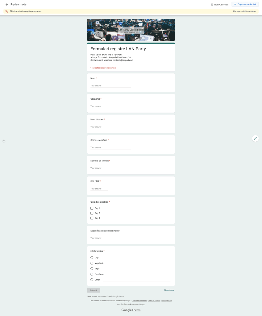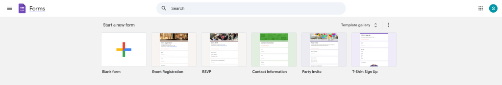Per fer el formulari amb google forms hem d’accedir a google forms amb el nostre compte de google i una vegada dins escollir en aquest cas la plantilla que es diu Event registration ja que es la que més s’asembla al que volem fer.