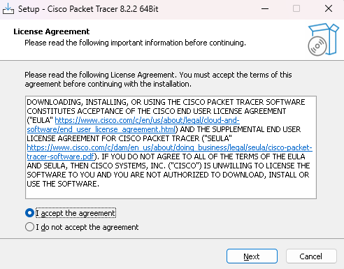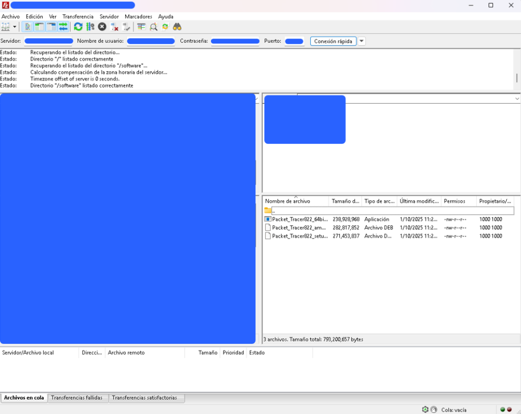 Per instal·lar Packet Tracer ens han proporcionat unes dades que hem de posar al FilleZilla per instal·lar una versió específica. Per començar l’instal·lació hem de posar les dades proporcionades a FilleZilla.