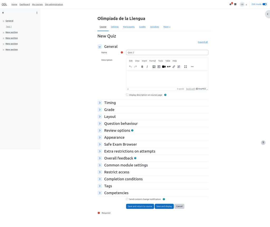 Now you will se a new page where you need to choose the name of the quiz and click on save and display.