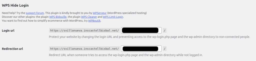 - He canviat el link d’entrada al /wp-login i al /wp-admin amb el plugin WPS Hide login, ara quan busques alguna de les dues surt pàgina no trobada. Fet amb el plugin WPS Hide Login.