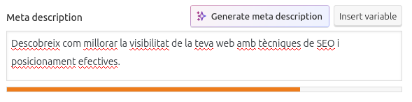 - Crear una metadescripció per a la pagina que contingui el títol que hem posat abans.