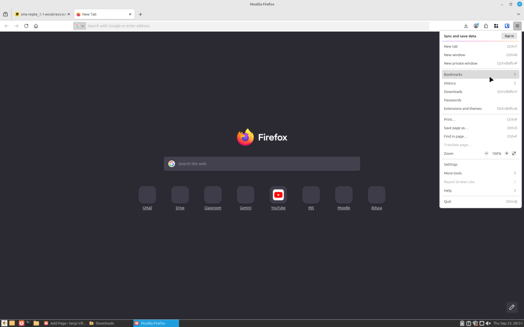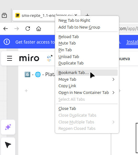 Per posar un bookmark a una pàgina s’ha de fer clic dret a sobre de la pàgina i clicar sobre l’opció que diu Bookmark Tab…