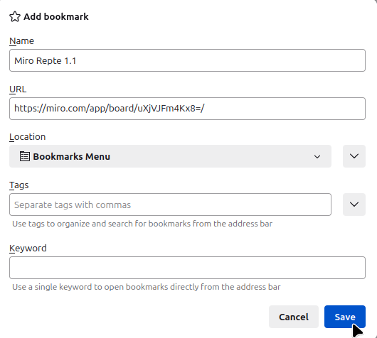 S’obrirà una finestra petita on pots configurar algunes coses pel bookmark.