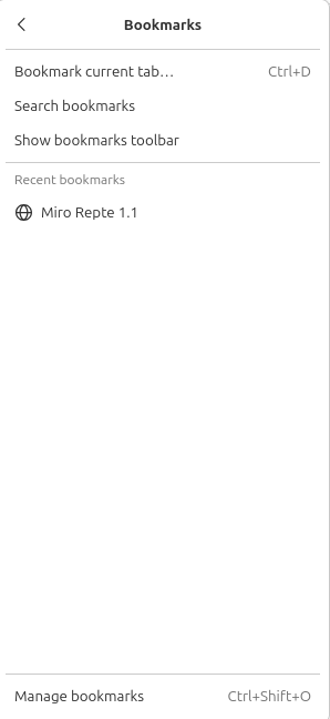 Per veure els bookmarks que tens has d’anar a la part superior dreta a les tres ratlles i al menú hi ha una opció que es diu bookmarks
